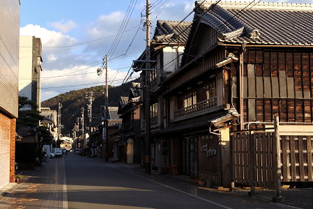 夫婦岩からさらに東側、音無山の麓にある江集落にも、古い町並みが残る。こちらは歴史のある港町で、いかにも伊勢地方の町並みらしい、妻入・板張りの民家が集まる。二見浦の賑わいと打って変わってごく静かな集落で、観光色は皆無と言って良いが、歩いて簡単に往復できるほどの近さなので、こちらにも訪れることをお奨めする。