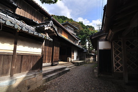 景観を形作っているのは、北前船の資料館としても公開されている「右近家」(写真二枚目)を含めた主に3家の邸宅。これらの邸宅を貫く路地はまるで中庭のような雰囲気で、ここを歩いていると長く連なった一つの邸宅の中を散歩しているような気分にもなってくる。