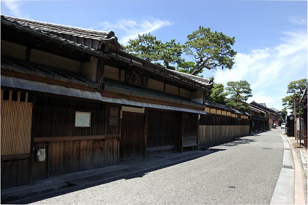 松阪を代表する町並みである、御城番屋敷。城を警護する役目の武士達が住んだ組屋敷で、当時の姿をほぼそのままとどめていることから、重要文化財に指定されている。石畳の通りを挟んで、整然と生け垣が続く風景は見事。