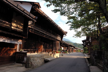 「まちなみ街道」の第一回として掲載した町並みは、今井町、美山北とこの妻籠だったのだが、今回7年目にしてやっと写真を更新することが出来た。当時のコメントでは「あまりに観光客が多すぎ、町並みも完璧すぎてまるでテーマパーク」と揶揄しているのだが、今回は早朝に訪れたため人はほとんどおらず、やはりすごい町並みだと素直に感動することができた。